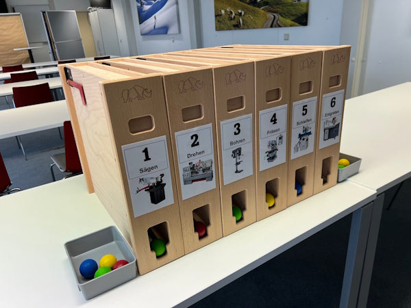 (im Lieferumfang nicht enthalten: Behälter, Beschriftung der Kugelbahnen, Fähnchen an den Kugelbahnen, Schulungsmaterial)
