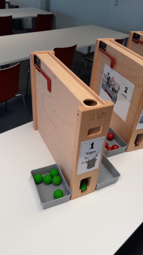 Diese Kugelbahnen sind perfekt geeignet, um die Grundlagen einer schlanken Produktion bzw. das Zusammenspiel von zentralen Lean-Prinzipien zu vermitteln.